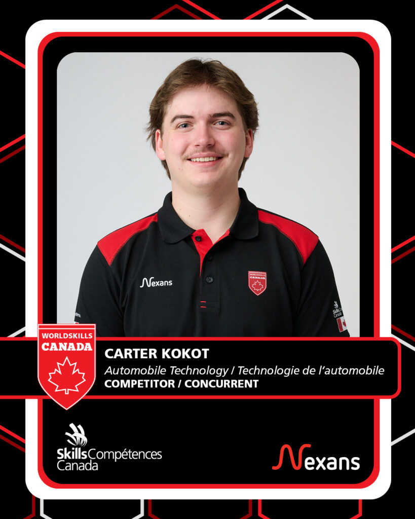 For Carter Kokot, a passion for the automotive trade is driven by the challenge of solving problems and working with his hands every day. His three-year journey with Skills has helped him grow his technical abilities, opened doors to new opportunities, and prepared him to compete at the highest level. As he gets ready for the international stage, Carter is excited to test his skills, connect with competitors from around the world, and experience the global automotive industry firsthand.