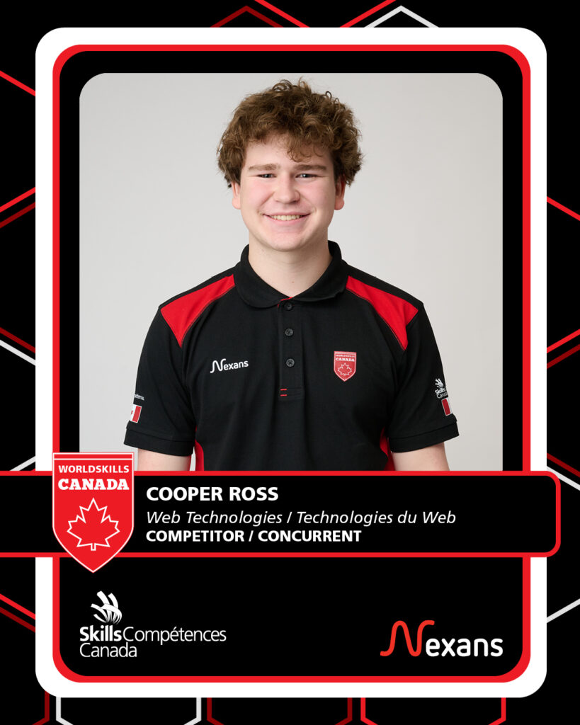 Cooper Ross discovered his passion for web development while attending Ernest Manning High School and at home, where he built many of his skills through self directed learning and hands on practice. His growth through Skills competitions reflects both his dedication and his drive to improve with each experience. What began as a learning opportunity has grown into a chance to represent Canada on the world stage. Along the way, Cooper has found not only technical growth but also a strong sense of community, building friendships and connections that extend beyond competition as he prepares for WorldSkills Shanghai.