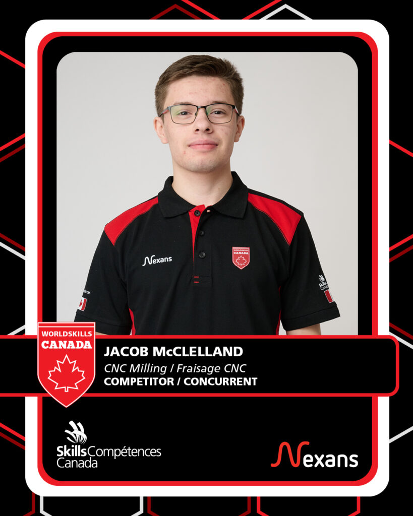 Jacob McClelland was drawn to CNC Machining by the balance of creativity, problem solving, and technical precision the trade demands. Inspired by the idea that the small components he creates can play a role in major projects, including advanced technologies and aerospace applications, Jacob has embraced every opportunity to grow. After two years of competing in Skills competitions, his dedication and drive earned him a place on Team Canada. Supported by his WorldSkills Canada Expert, Jurgen Hierholzer, and his Trainer, Tim Wong, Jacob continues to refine his technique and push his limits as he prepares to compete on the world stage.