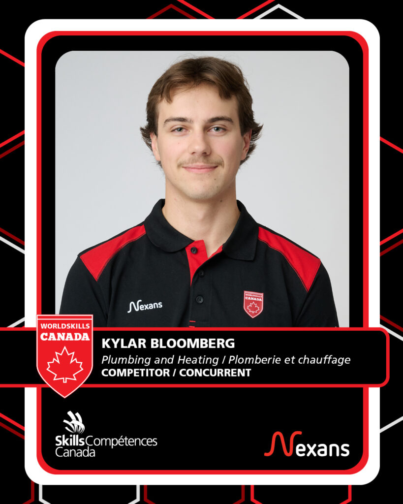 Kylar Bloomberg’s journey in Plumbing has been shaped by strong mentorship, consistent training, and a drive to keep improving. Studying at Lethbridge Polytechnic, he has built his skills through multiple Skills competitions, earning podium finishes at the national level two years in a row. Guided by his Trainer, Justin Fisher, a former WorldSkills competitor, and supported by his WorldSkills Canada Expert, Kylar continues to expand his knowledge and refine his technique. As he prepares for WorldSkills Shanghai, he is focused on learning new methods, exploring different tools and techniques, and representing Canada at the highest level.