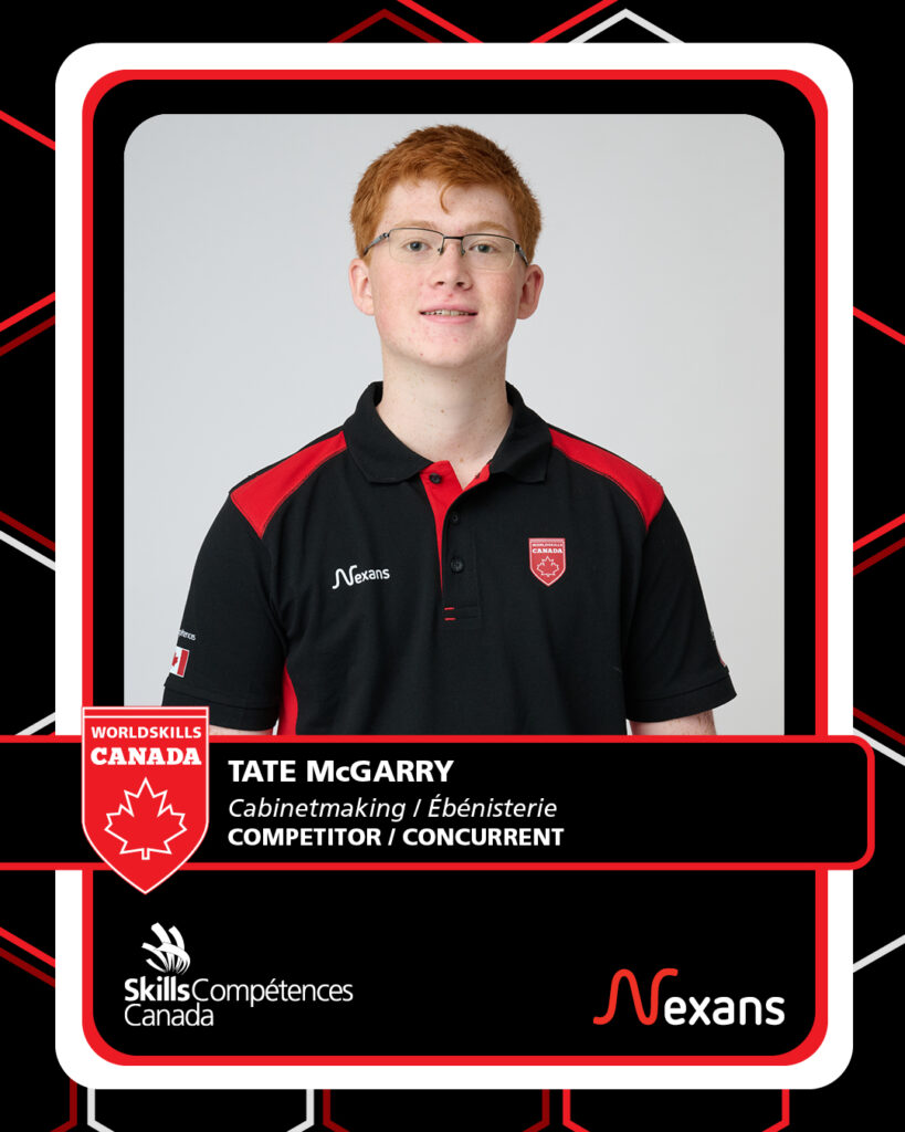 Tate McGarry’s passion for woodworking began long before his training at SAIT, where he refined his skills and discovered his competitive drive. After first competing in Carpentry, he found his true fit in Cabinet Making, a trade that allows him to combine creativity, precision, and problem solving. His Skills journey has pushed him to learn new techniques, take on challenging projects, and earn a place on Team Canada. As he prepares to compete internationally, Tate is excited to test his abilities against top competitors from around the world and represent Canada on the global stage.