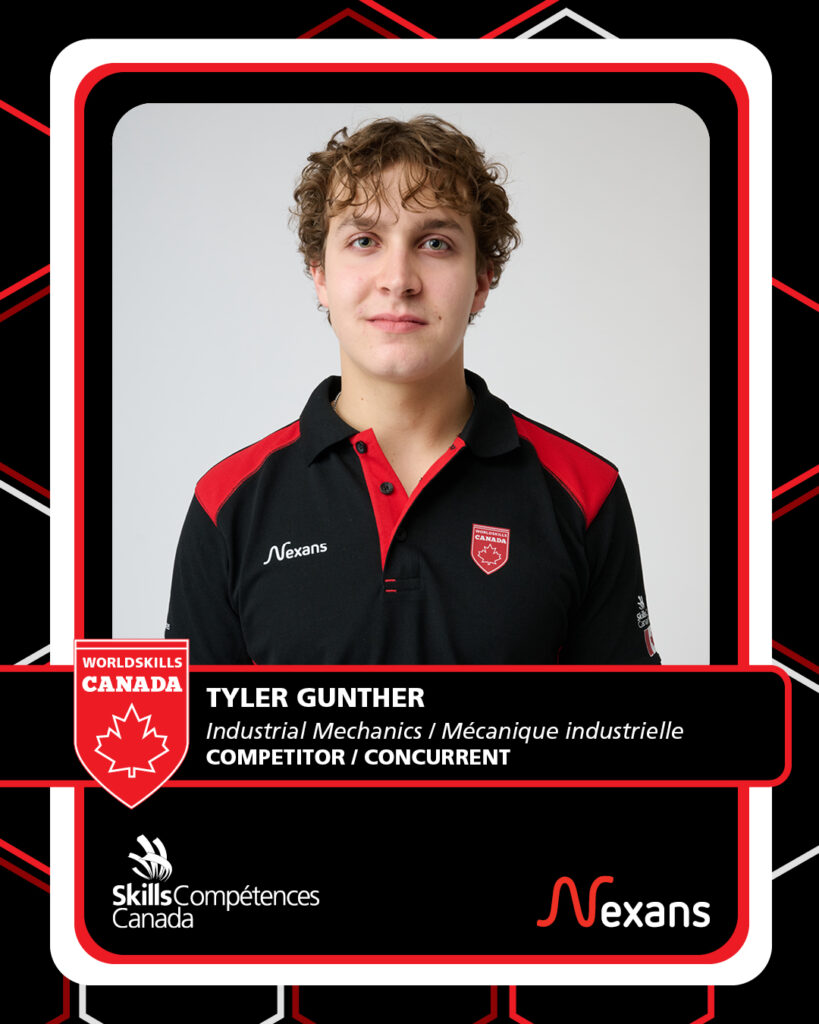 Tyler Gunther discovered his passion for the mechanical world at SAIT, where his dedication and focus quickly set him apart. In his very first year competing in Skills, his talent and determination carried him all the way to a gold medal and a place on Team Canada. Through the experience, Tyler has expanded his technical knowledge, refined his skills, and embraced the opportunity to grow alongside expert mentors. Supported by his WorldSkills Canada Expert, Mohamed Flyes, and Trainer, Jason Parnell, he is now preparing to represent Canada and take on the challenge of competing against the best in the world.