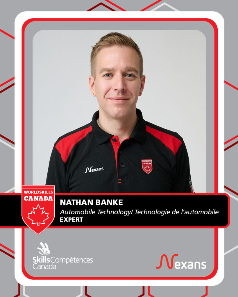 “Representing Canada as an Expert at WorldSkills has been a career goal of mine for over a decade. I’m driven to help more Canadians reach the podium and to showcase the world-class talent of our automotive technicians.” – Nathan Banke